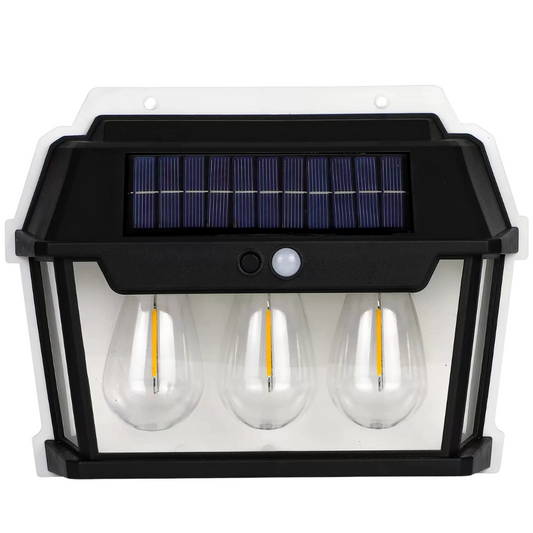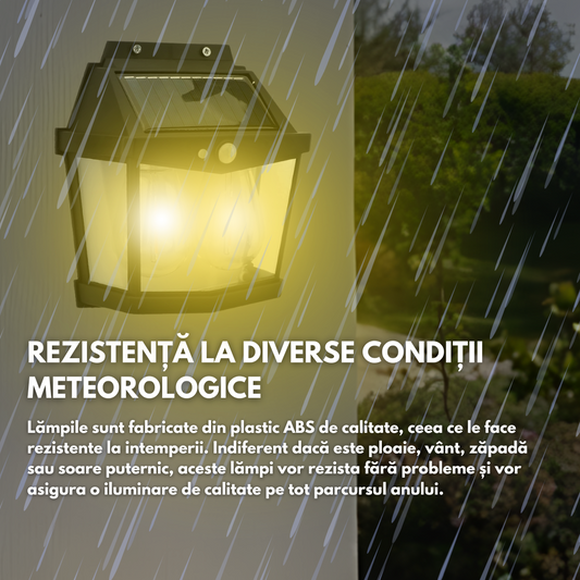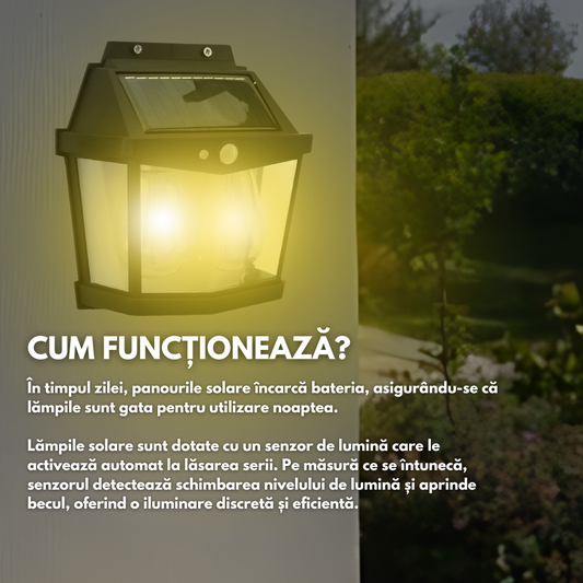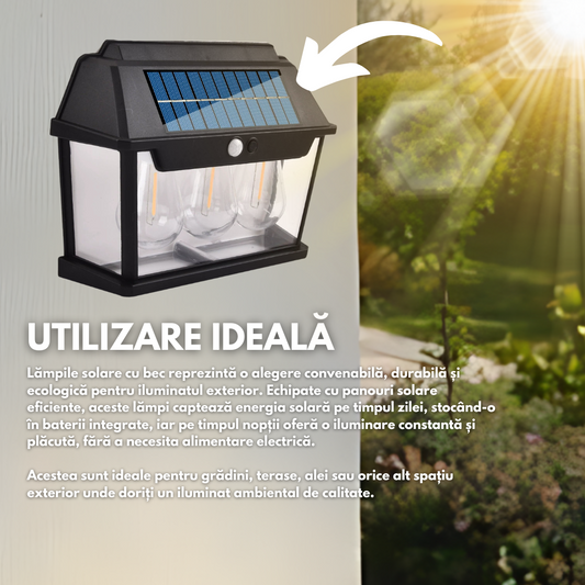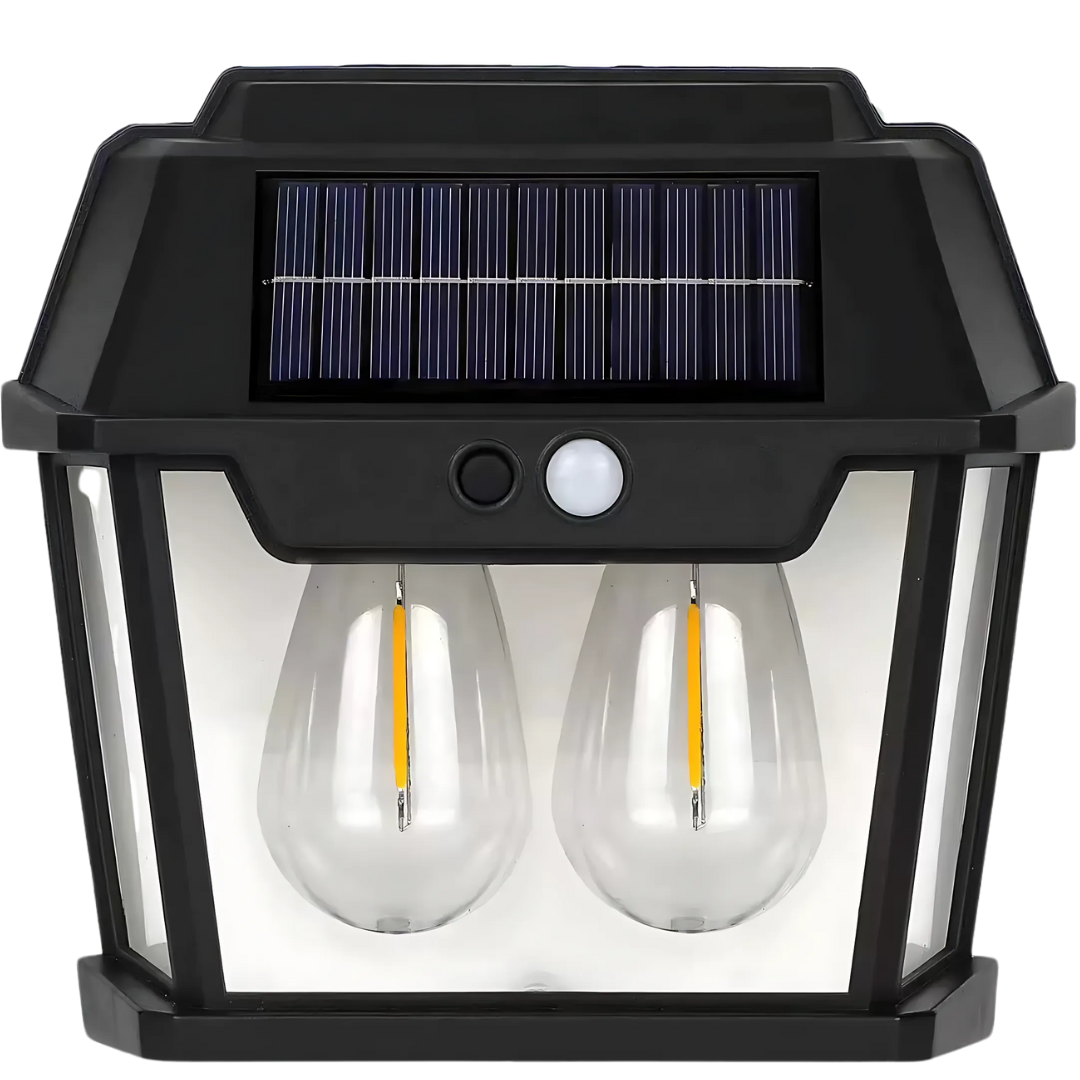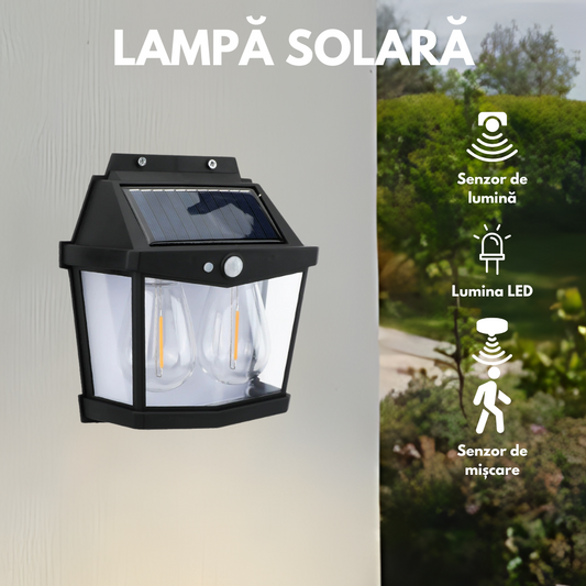 Lampa solara, SDEPOT®, cu doua becuri, senzor de miscare, rezistenta la apa, lumina galbena