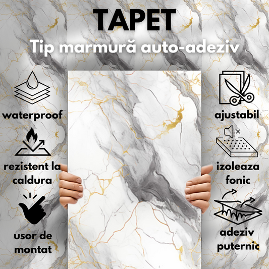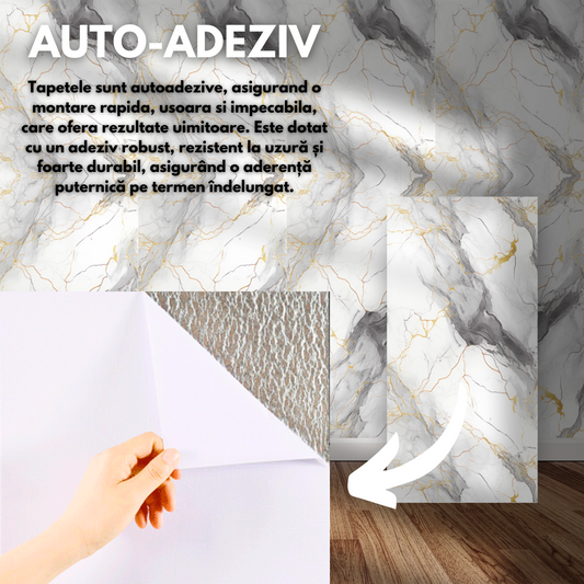Tapetul autocolant cu imitatie de marmura de la S DEPOT® ofera o solutie inovatoare si eficienta pentru decorarea peretilor interiori, adaugand un plus de eleganta si sofisticare oricarui spatiu.