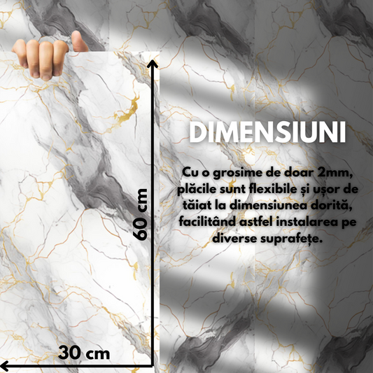 • Aceste placi sunt perfecte pentru proiecte de design interior, fie ca este vorba de redecorarea unei camere sau a unui spatiu comercial, oferind un aspect elegant si rafinat.