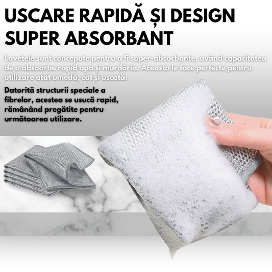 : Concepute pentru a proteja mainile de contactul cu aburii fierbinti sau substantele chimice din detergent, aceste lavete iti asigura confortul in timp ce le folosesti.