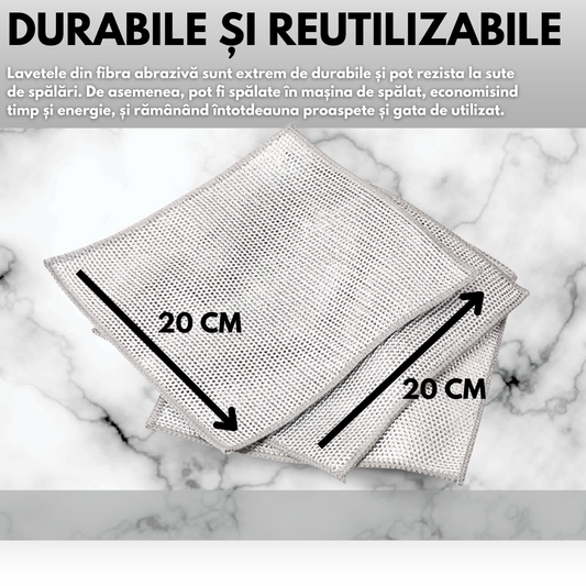 Cautati o solutie eficienta si sigura pentru curatarea vaselor si a suprafetelor din bucatarie? Setul nostru de 5 lavete din fibra abraziva, de 20x20 cm, este ideal pentru o curatenie impecabila, fara a lasa zgarieturi.