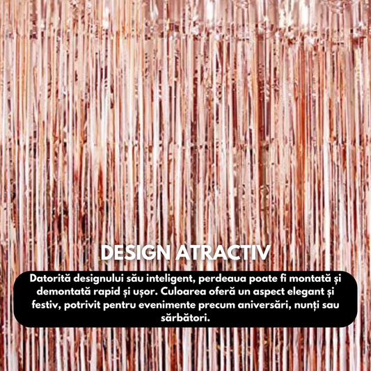 Design Atractiv: Perdeaua vine intr-o varietate de culori si modele pentru a se potrivi temei petrecerii dvs. Cu siguranta veti gasi o optiune care sa se potriveasca perfect cu decorul si atmosfera evenimentului dvs.