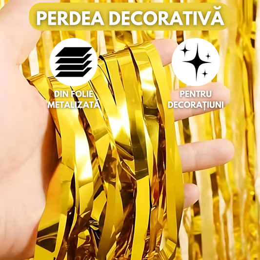 Perdea Decorativa din folie auriu metalizat, pentru petreceri aniversare