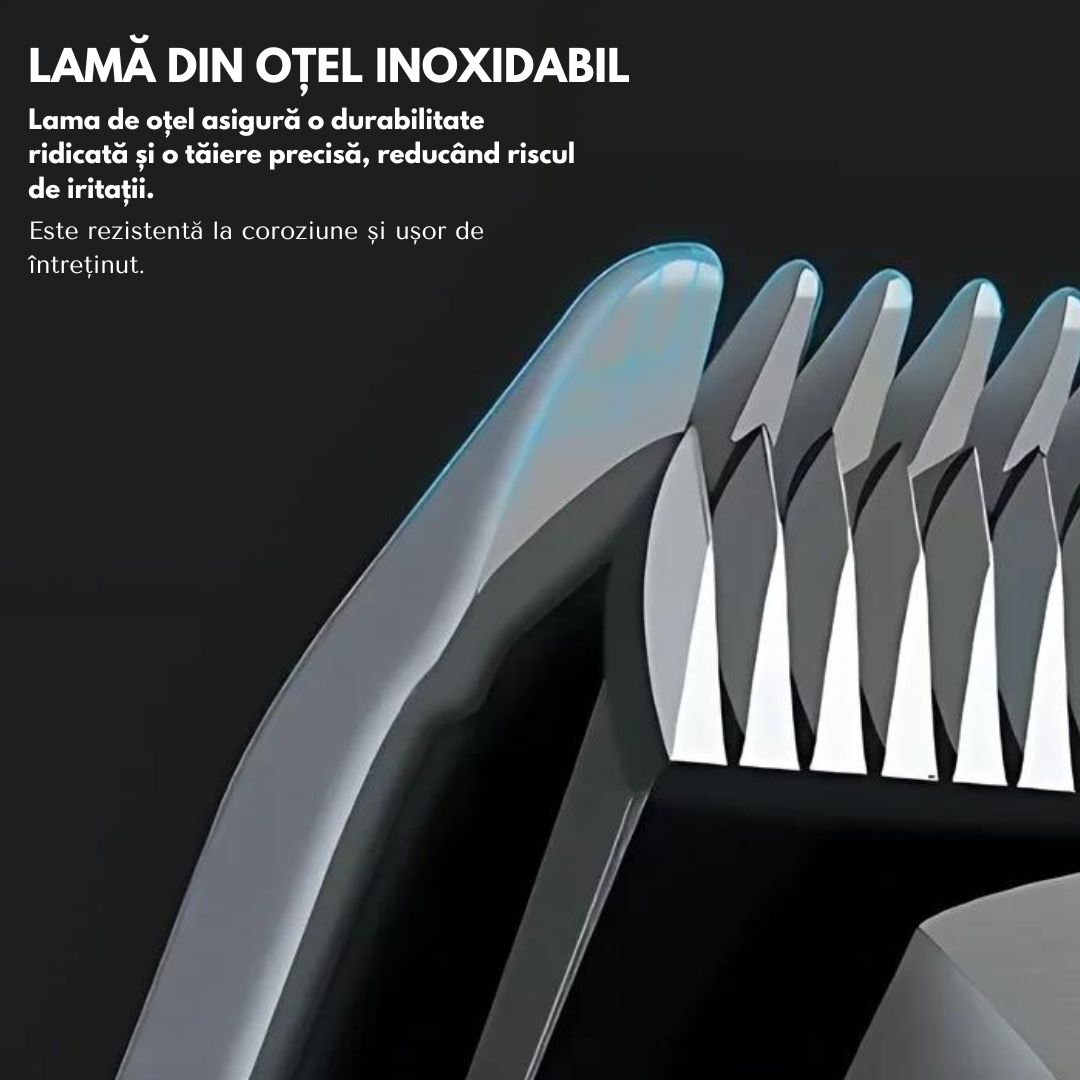 Lama din otel inoxidabil: Lama de otel asigura o durabilitate ridicata si o taiere precisa, reducand riscul de iritatii. Este rezistenta la coroziune si usor de intretinut.