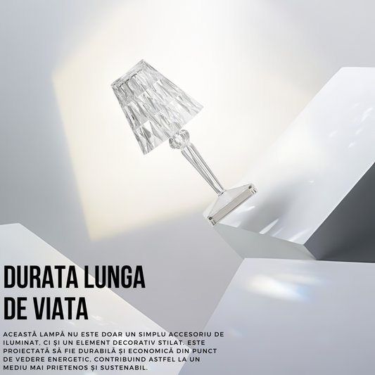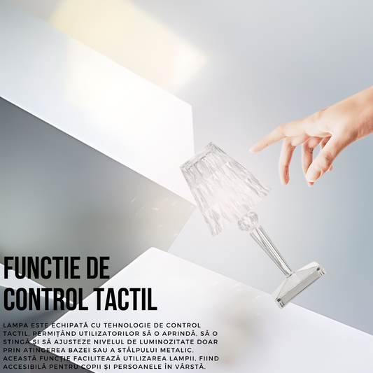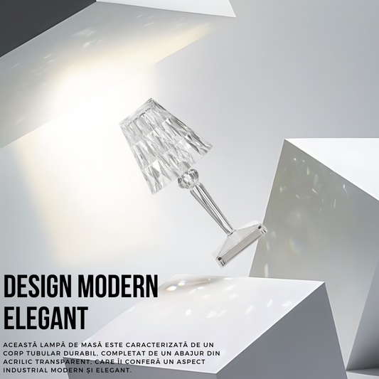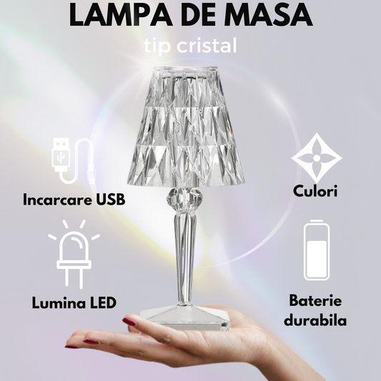 Lampa de masa tip cristal, SDEPOT®, cu picior, 3 temperaturi de culoare, control touch, reincarcabila prin USB, acrilic modern