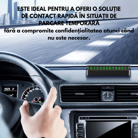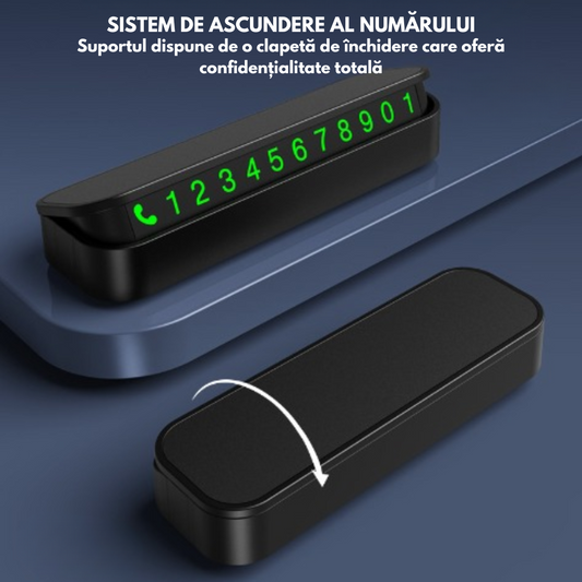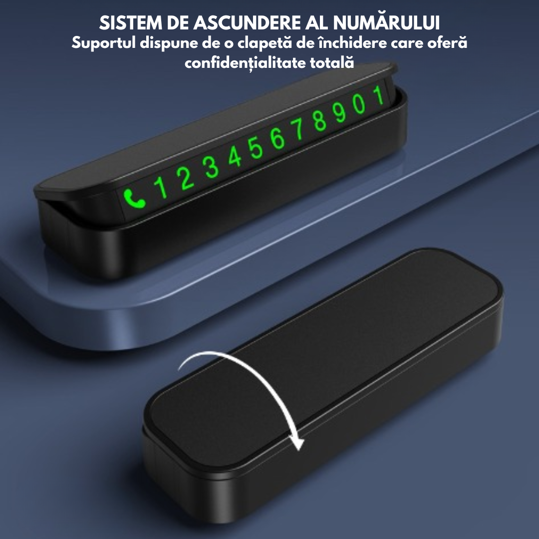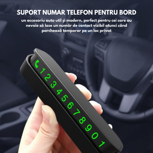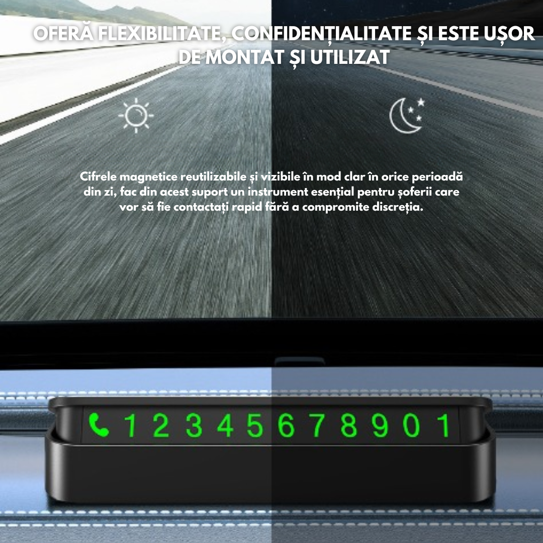 Acest suport pentru numarul de telefon este un accesoriu auto util si modern, perfect pentru cei care au nevoie sa lase un numar de contact vizibil atunci cand parcheaza temporar pe un loc privat. Este ideal pentru a oferi o solutie de contact rapida in situatii de parcare temporara, fara a compromite confidentialitatea atunci cand nu este necesar.